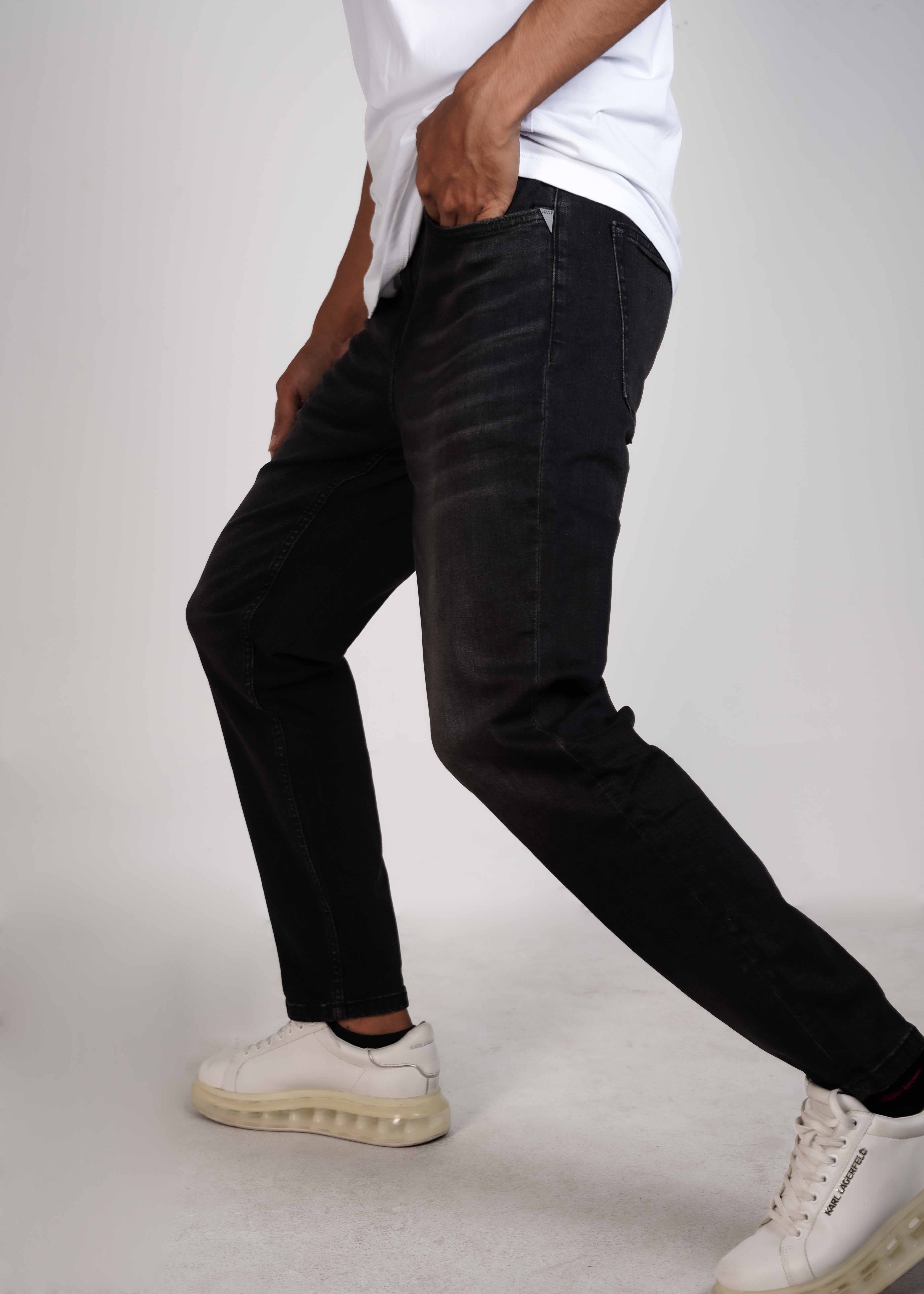 Light Indigo color slim-fit jeans. Five pockets. Faded effect. Zip fly and button fastening on the front